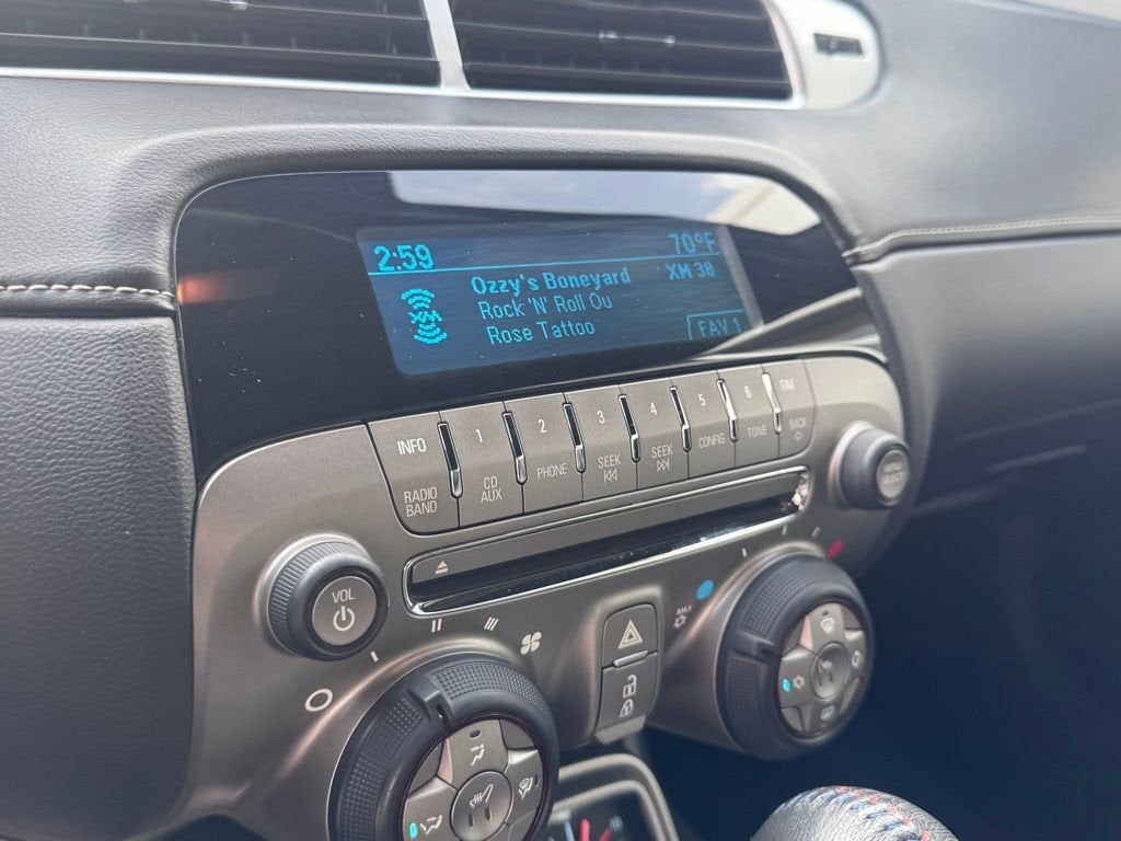 Recent Arrival!Clean CARFAX. Odometer is 46642 miles below market average!Black Granite Metallic 2012 Chevrolet Camaro SS 2SS 2D Convertible RWD 6-Speed Automatic with TapShift 6.2L V8 SFI2 Front Cup Holders, 20 x 8 Fr & 20 x 9 Rr Painted Aluminum Wheels, 20 x 8 Front & 20 x 9 Rear Aluminum Wheels, 3-Spoke Leather-Wrapped Steering Wheel, 3.27 Axle Ratio, 4-Wheel Antilock 4-Wheel Disc Brakes, 4-Wheel Disc Brakes, 45th Anniversary Package, 9 Speakers, ABS brakes, Air Conditioning, Alloy wheels, AM/FM radio: SiriusXM, Analog Instrumentation, Auto-dimming door mirrors, Auto-dimming Rear-View mirror, Auxiliary Multi-Function Gauges, Bluetooth® For Phone, Boston Acoustics Premium 8-Speaker System, Brake assist, Brilliant Red/Medium Charcoal Stripe Package, Bumpers: body-color, Carpeted Front Floor Mats, CD player, Compass, Convertible roof lining, Delay-off headlights, Driver door bin, Driver vanity mirror, Dual front impact airbags, Dual front side impact airbags, Electric Rear-Window Defogger, Electronic Cruise Control, Electronic Stability Control, Emergency communication system: OnStar Directions & Connections, Exterior Parking Camera Rear, Four wheel independent suspension, Front anti-roll bar, Front Bucket Seats, Front Center Armrest, Front fog lights, Front reading lights, Front Sport Bucket Seats, Fully automatic headlights, Garage door transmitter, Glass rear window, Gray Car Cover, Head-Up Display, Heads-Up Display, Heated door mirrors, Heated Driver & Front Passenger Seats, Heated front seats, High-Intensity Discharge Headlamps, Illuminated entry, LATCH System, Leather Seat Trim, Leather Seating Surfaces, Leather Shift Knob, Leather-Wrapped Shift Knob, Low tire pressure warning, Maintenance-Free Battery, Manual Rake & Telescopic Steering Column, Occupant sensing airbag, OnStar 6 Months Directions & Connections Plan, Outside temperature display, Panic alarm, Passenger door bin, Passenger vanity mirror, Power convertible roof, Power door mirrors, Power driver seat, Power passenger seat, Power Programmable Door Locks, Power steering, Power windows, Preferred Equipment Group 2SS, Radio data system, Radio: AM/FM Stereo w/CD-ROM/MP3 Playback, Rear anti-roll bar, Rear window defroster, Remote Keyless Entry, Remote keyless entry, Remote Vehicle Starter System, RS Package, Security system, SIRIUSXM Satellite Radio, Speed control, Speed-sensing steering, Spoiler, StabiliTrak, Stainless-Steel Dual-Outlet Exhaust, Steering Wheel Mounted Audio Controls, Steering wheel mounted audio controls, Tachometer, Telescoping steering wheel, Tilt steering wheel, Tonneau Cover, Traction control, Trip computer, Ultrasonic Rear Park Assist, Universal Home Remote, USB Port Audio System Feature, Variably intermittent wipers, Voltmeter, Wireless PDIM, 2 Front Cup Holders, 20 x 8 Fr & 20 x 9 Rr Painted Aluminum Wheels, 20 x 8 Front & 20 x 9 Rear Aluminum Wheels, 3-Spoke Leather-Wrapped Steering Wheel, 3.27 Axle Ratio, 4-Wheel Antilock 4-Wheel Disc Brakes, 4-Wheel Disc Brakes, 45th Anniversary Package, 9 Speakers, ABS brakes, Air Conditioning, Alloy wheels, AM/FM radio: SiriusXM, Analog Instrumentation, Auto-dimming door mirrors, Auto-dimming Rear-View mirror, Auxiliary Multi-Function Gauges, Bluetooth® For Phone, Boston Acoustics Premium 8-Speaker System, Brake assist, Brilliant Red/Medium Charcoal Stripe Package, Bumpers: body-color, Carpeted Front Floor Mats, CD player, Compass, Convertible roof lining, Delay-off headlights, Driver door bin, Driver vanity mirror, Dual front impact airbags, Dual front side impact airbags, Electric Rear-Window Defogger, Electronic Cruise Control, Electronic Stability Control, Emergency communication system: OnStar Directions & Connections, Exterior Parking Camera Rear, Four wheel independent suspension, Front anti-roll bar, Front Bucket Seats, Front Center Armrest, Front fog lights, Front reading lights, Front Sport Bucket Seats, Fully automatic headlights, Garage door transmitter,